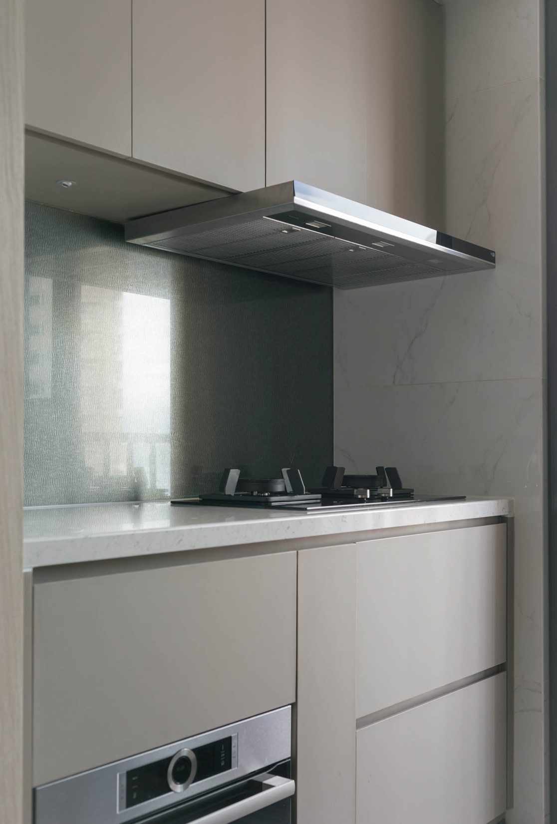 Located in the heart of Kennedy Town, this 650 square foot residence was recently redesigned to reflect a modern, minimalist aesthetic. Originally a three-bedroom apartment, the young couple who own the space decided to knock down the wall separating two of the rooms and create a versatile space that could be used as a home office, library, and walk-in closet.